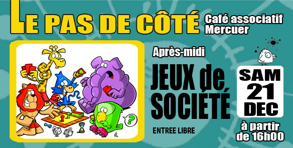 Viens avec le ou les jeux que tu préfères, le faire découvrir et découvrir celui des autres, Viens jouer tout l’après midi dès 16h ! Amènes ton goûter si tu veux, tes parents, papi et mamie, ton grand frère et ta petite sœur, il y en aura pour tout le monde… Nous, on a déjà mis de côté des jeux (adultes, enfants…) et on attend d’y jouer avec toi! Ah Ah Ah !!!