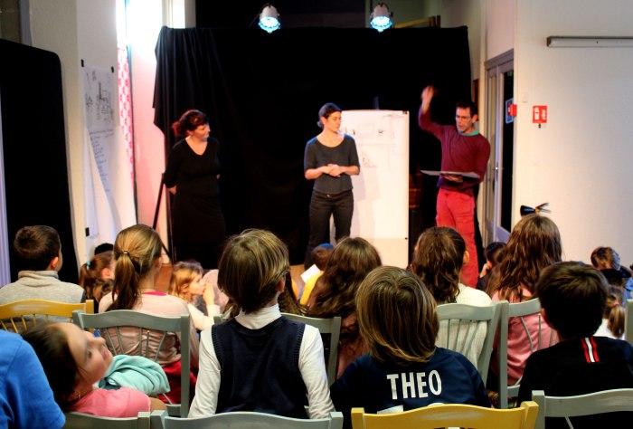 Ensuite, comment on crée un spectacle, la lumière, le son, qu’est ce que c’est qu’une scénographie, comment la compagnie choisit le thème du spectacle et le met en scène.
