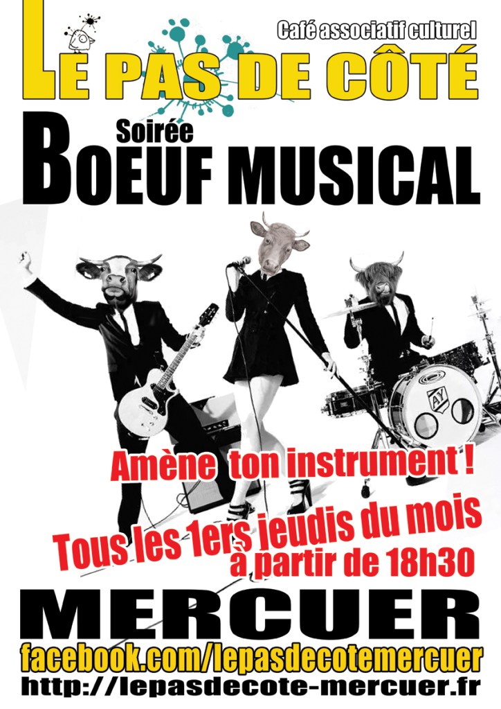 Il est temps de sortir ta guitare, ta trompette, ton clavier, ton triangle, ta voix, ta basse, ton violon, ton accordéon, ton cajon… Bref, on se retrouve, on tente, on rigole, on improvise, on passe un bon moment entre musiciens de tous niveaux, sur scène, sans prise de tête. C’est ouvert à tous et à toutes : débutants, confirmés! C’est pour s’éclater, se lâcher, se rencontrer et faire de la musique ensemble plutôt que tout seul dans son coin!!